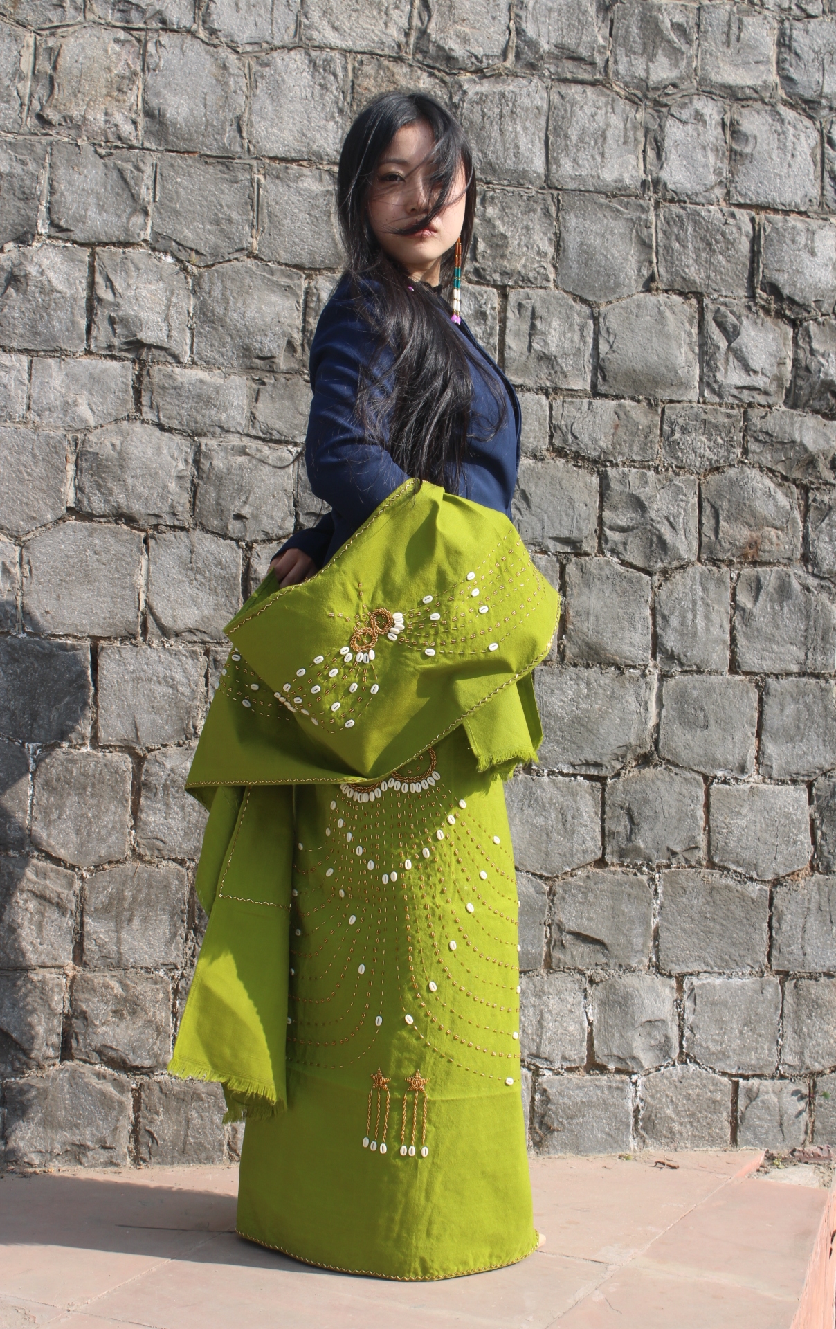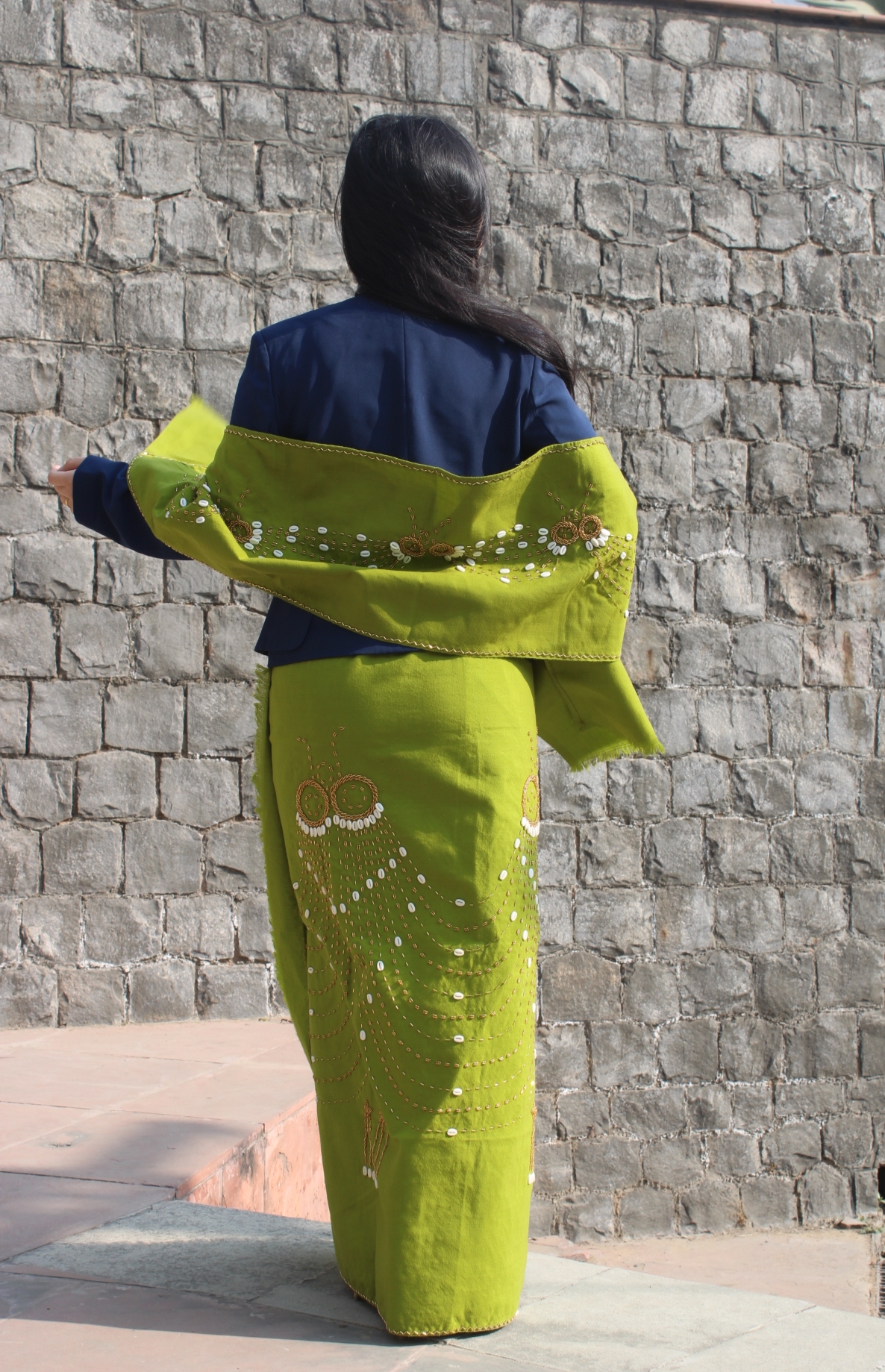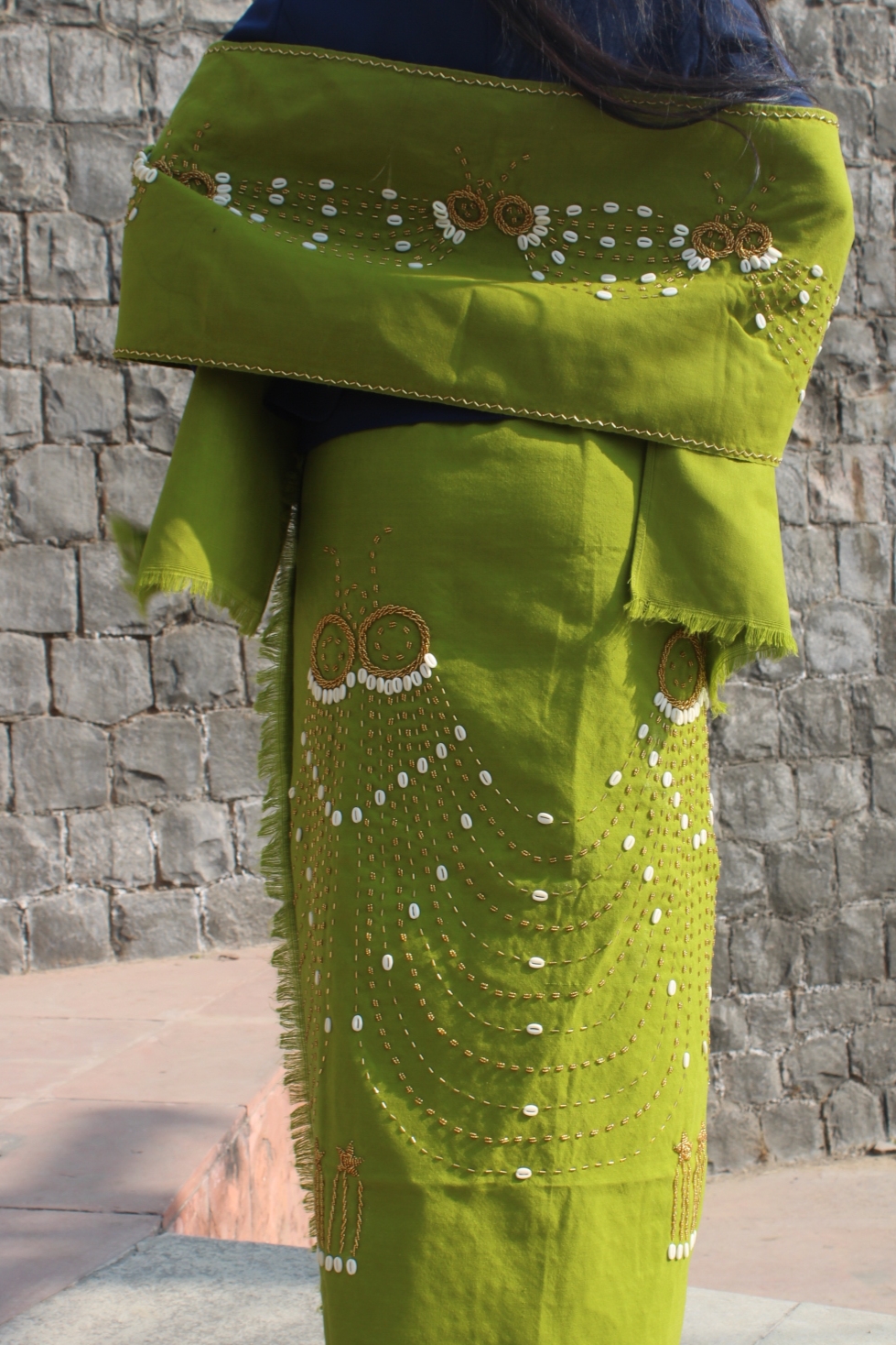 Khomsing Kashan Suit, Green | Seashell Embroidery