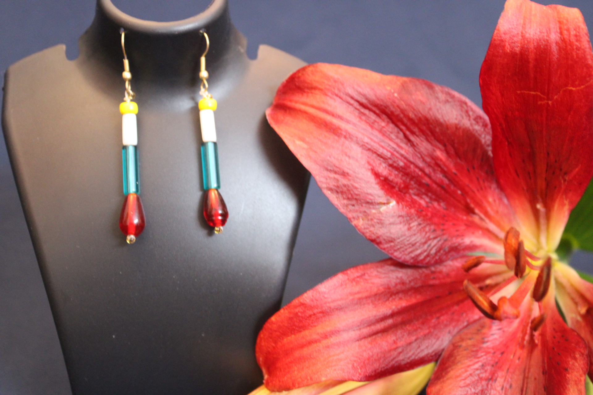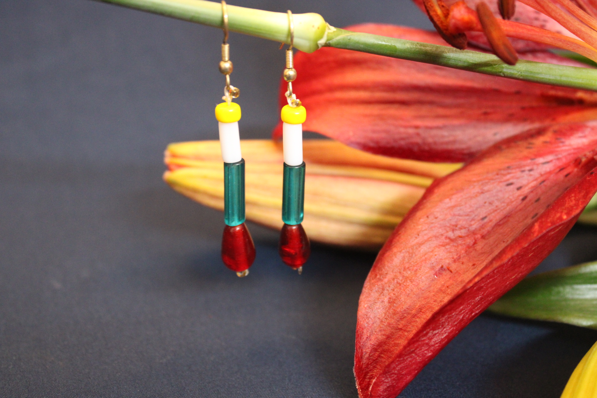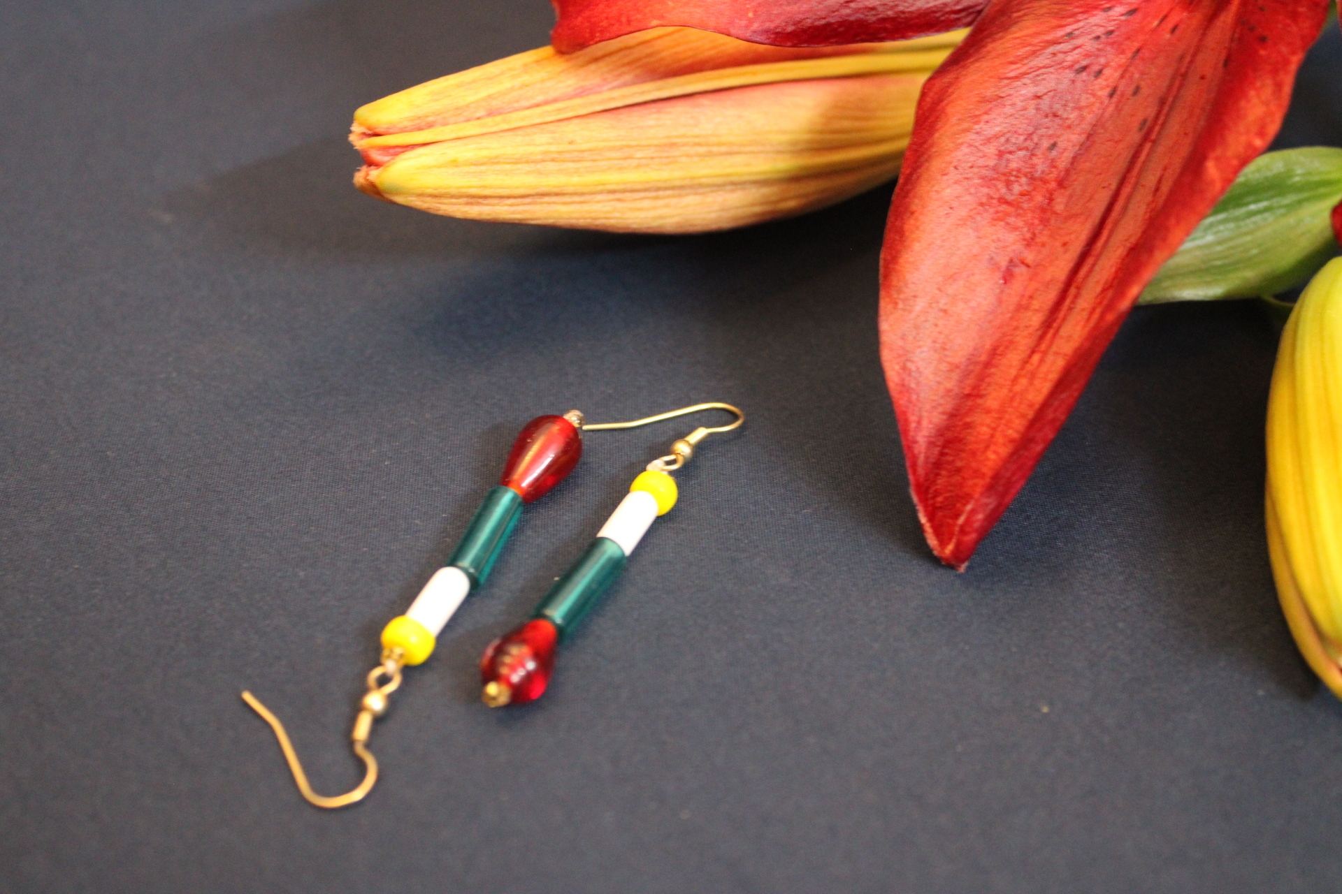 Stylish Traditional earring, yellow white & blue tube, | small butterfly chamthei, 1 line string for kids and girls